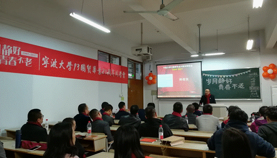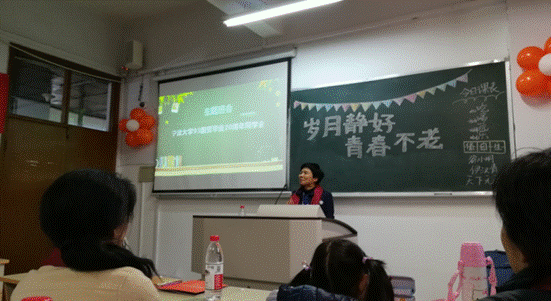 曾经讲授《统计学分析》的孙伍琴老师,二十年后再次站上讲台,望着熟悉的同学们,感慨颇多。孙老师回顾了二十年前的课堂情形,也对大家未来的工作和生活寄予了祝福和期望。曾经谆谆教诲的班主任虽遗憾未到场,但也通过信件传递了对同学们的真诚祝福,希望同学们在未来的日子里慢慢走,好好享受人生。