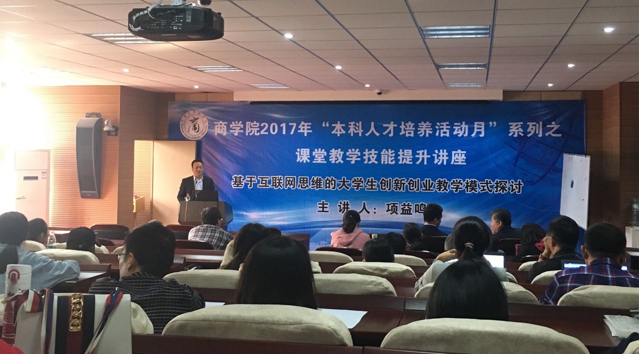 2017年11月8日下午14点,色情av影片 邀请浙江工商大学管理工程与电子商务学院副教授,硕士生导师,互联网与商业创业系主任兼信息管理系主任项益鸣老师在学院109教室给广大教师做了《基于互联网思维的大学生创新创业教学模式探讨》专题讲座。目的是为了提升色情av影片 教师课堂教学技能及如何能有效的做好学科竞赛指导,提高学生的综合竞争实力。