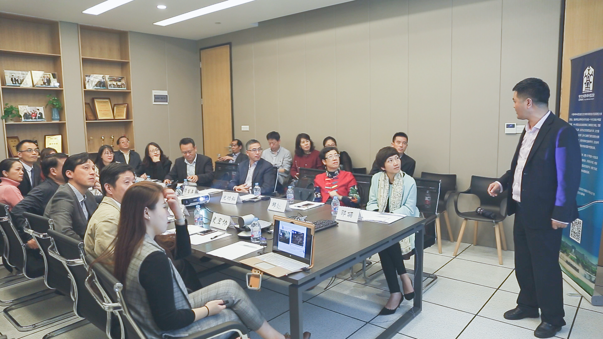 沈功灿理事长首先向老师们介绍盛世方舟的整体情况,随后带领老师们参观了宁大中澳MBA校友会秘书处办公室。在座谈会中,沈功灿首先介绍了中澳MBA校友会的发展历程。校友会成立于2014年4月12日,目前已有320多名会员。中澳MBA校友会本着以感情为纽带,以活动为载体,加强海内外校友之间、校友与学校之间的联系,团结广大校友,提供互动交流的平台,具有提升中澳MBA项目品牌的作用。随后介绍了校友会活动举办的情况,校友会每个月有轮值班级组织丰富多彩的活动,如新书分享会、品茶会、鉴酒会等,另外还举办了走访校友企业系列活动,每月走访3-4家校友企业,以联络校友感情、共谋发展。中澳MBA校友会自成立以来一直在不断的进步中,有意创办宁大校友投资公司—宁波澳鼎投资有限公司,旨在降低搜索成本,纵向扶持年青校友创新创业,降低道德风险,横向实现校友资源互利共享,最后反哺母校,实现持续共赢。最后,沈功灿向老师们介绍了校友会下半年度的工作计划,并希望各位老师能给校友会工作一些指导意见。