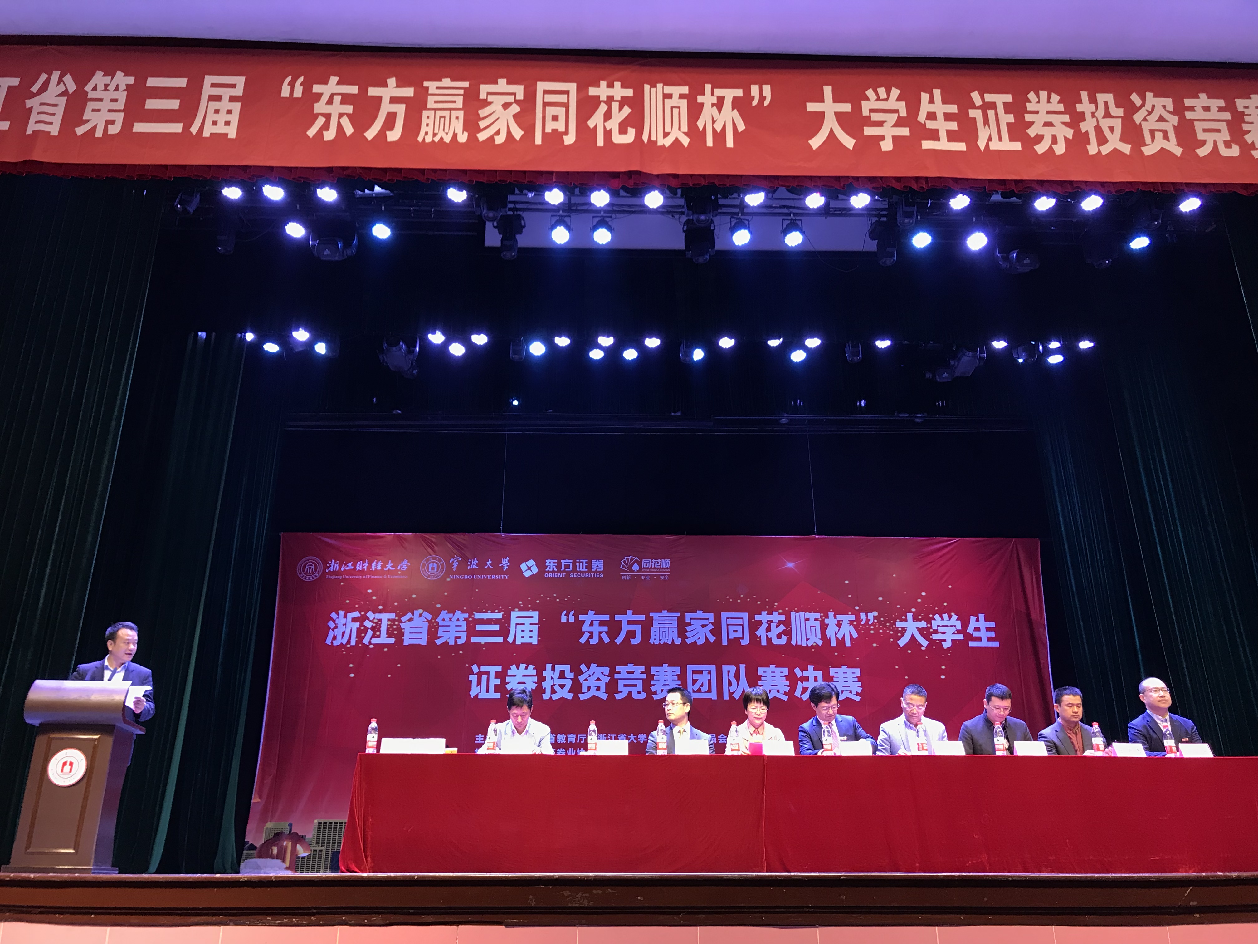 10月28—29日,由浙江省教育厅、浙江省大学生科技竞赛委员会主办,浙江财经大学、浙江省大学生证券投资竞赛委员会承办,色情av影片 、浙江核新同花顺网络信息股份有限公司以及东方证券股份有限公司共同协办的浙江省第三届“东方赢家同花顺杯”大学生证券投资竞赛团队赛决赛在色情av影片 顺利举行。本次竞赛由色情av影片 组织实施,成立了由范柏乃院长牵头,各个职能部门协同的竞赛组织团队,精心策划,细心组织,为竞赛的成功举办奠定了基础,来自全省48所高校的160个团队参加了本次决赛。