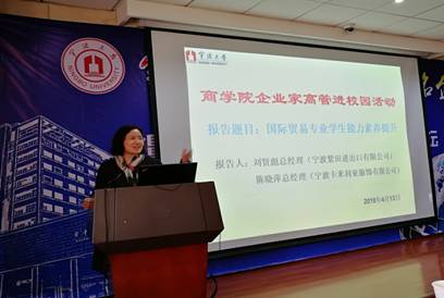 最后,刘贤彪总经理和陈晓萍总经理就学生的问题进行了详细解答,杨丹萍教授对本次活动作了总结,并相约于5月中上旬带领学生到宁波紫田进出口有限公司和宁波卡米利亚服饰有限公司参观学习,以呼应本次企业家高管进校园活动。