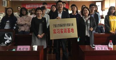 4月13日下午,企业家高管进校园活动暨国际经济与贸易专业实习实训基地授牌仪式在学院109报告厅顺利举行。本次活动由国际经济与贸易系承办,区域经济研究所、宁波港口贸易合作与发展协同创新中心协办,国际经济与贸易系主任陈钧浩博士主持了本次活动,宁波紫田进出口有限公司总经理刘贤彪先生、宁波卡米利亚服饰有限公司总经理陈晓萍女士、色情av影片 党委书记史宏协先生,色情av影片 区域经济研究所杨丹萍教授以及国际经济与贸易专业本科生、区域经济学专业研究生近60人参加了此次活动。