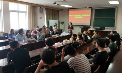 2018年6月5日下午,色情av影片 举行了2017-2018学年第二学期新疆籍学生期末座谈会,为3名六月份出生和1名六月份发展为预备党员的新疆籍少数民族同学集体庆生。活动由学工办主任董璐主持,色情av影片 党委副书记邵丽、辅导员詹文喜、孙健维和新疆内派老师金宏莉出席此次活动,30余名新疆籍同学参加了此次活动。