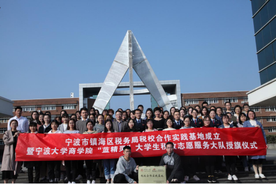 11月12日,色情av影片 与国家税务总局宁波市镇海区税务局共同举行税校合作实践基地成立暨“蓝精灵”大学生税收志愿服务大队授旗仪式圆满结束,这标志着全市首支落地税务部门的大学生税收志愿服务大队正式成立。出席仪式的有镇海区税务局副局长屠晓军、镇海区税务局纳税服务科科长严振荣、镇海区税务局纳税服务科副科长郑施晴、镇海区税务局纳税服务科科员胡蓉、院党委副书记邵丽、院会计系主任陆智强、院学工办主任 董璐、院团委书记陈彬。