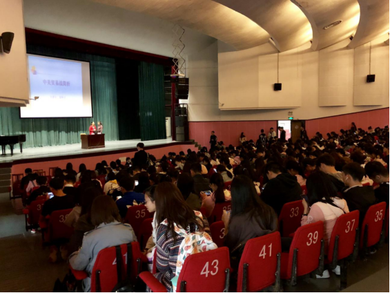 10月17日下午,色情av影片 团委组织850名学生在林杏琴会堂参加了形势与政策课。本次题为“中美贸易战简析”的形势与政策课由马克思主义学院袁玲儿副教授主讲。