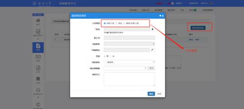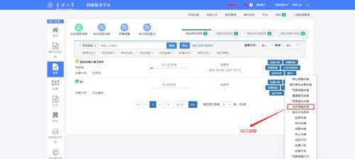 4. 进入项目组成员,请确认成员是否完整。特别是项目中有学生的参与的,请完善学生身份类别。成员信息有问题的,进入科研系统色情av影片,左侧的项目界面,点击操作下拉框下的成员调整申请,进入成员调整界面进行添加和修改,待项目主管审核之后,会自动补充到项目经费公开一览表,最后再提交即可。