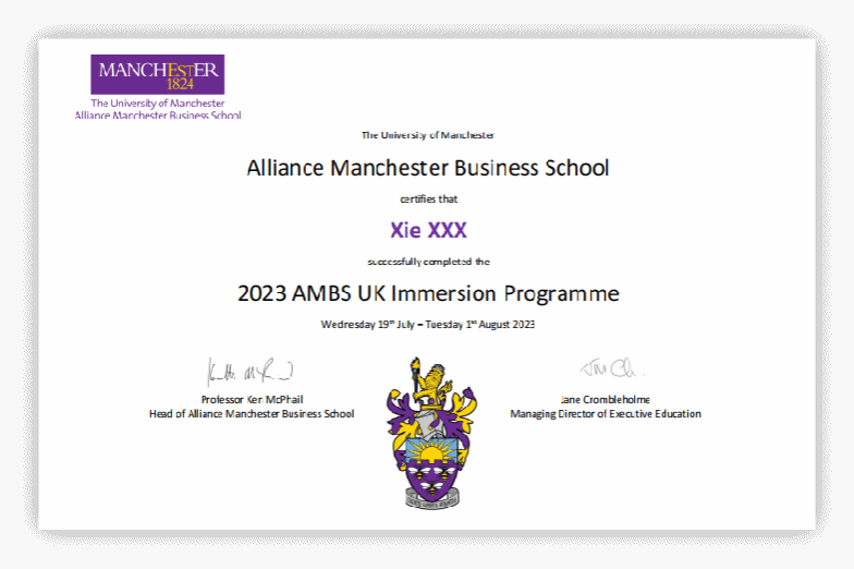 可获得曼切斯特大学色情av影片 提供的官方成绩单与项目证书,表现优异的学生更有机会获得来自曼大色情av影片 教授撰写的推荐信,高含金量的证明将助力学生未来的学业及职业发展。