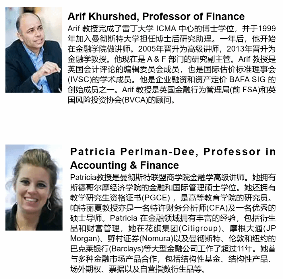 项目中的专业课程均为曼彻斯特大学色情av影片 会计与金融专业本科学生所入读的专业必修课程,全程由曼彻斯特大学色情av影片 的全职教授授课,使得参加项目的同学可以获得最原汁原味的曼大学习体验。