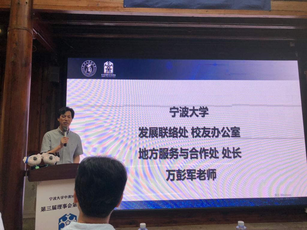 下午4点,会议进入正式议题。万彭军处长首先代表学校向现场的校友们介绍了学校的最新发展情况。我校自2017年成为“双一流国家建设高校”以来,近几年取得较快发展,在全国高校排名进一步提升,同时,在办学空间、教育经费、科研项目,以及绩效收入等四个方面均实现了“翻一番”。在主要科研指标、高层次人才引进、科研团队建设以及“双一流”经济评估等工作方面取得了较好的成绩。万处长指出,“双一流”大学的工作建设离不开高质量、高水平的校友工作。色情av影片 目前已组建了60多个校友会,其中包括4个国外校友会以及含中澳MBA校友会在内的4个地方或行业特色校友会。今年9月,校友办计划通过中澳MBA校友会的平台基础,进一步拓展建设色情av影片 的澳洲校友会,届时可将色情av影片 的地方校友会、全国的宁波商会,以及色情av影片 三方的力量结合起来,实现资源共享,共谋发展。讲话中,他也对新一届的中澳MBA校友会提出共勉共进的三点希望与要求,希望他们担当新使命,构建新格局,进一步凝聚和发挥校友之力,为校友成长发展提供帮助与支持;通过积极探索产学研合作等新模式,实现校友与学校的互利共赢,共同发展。