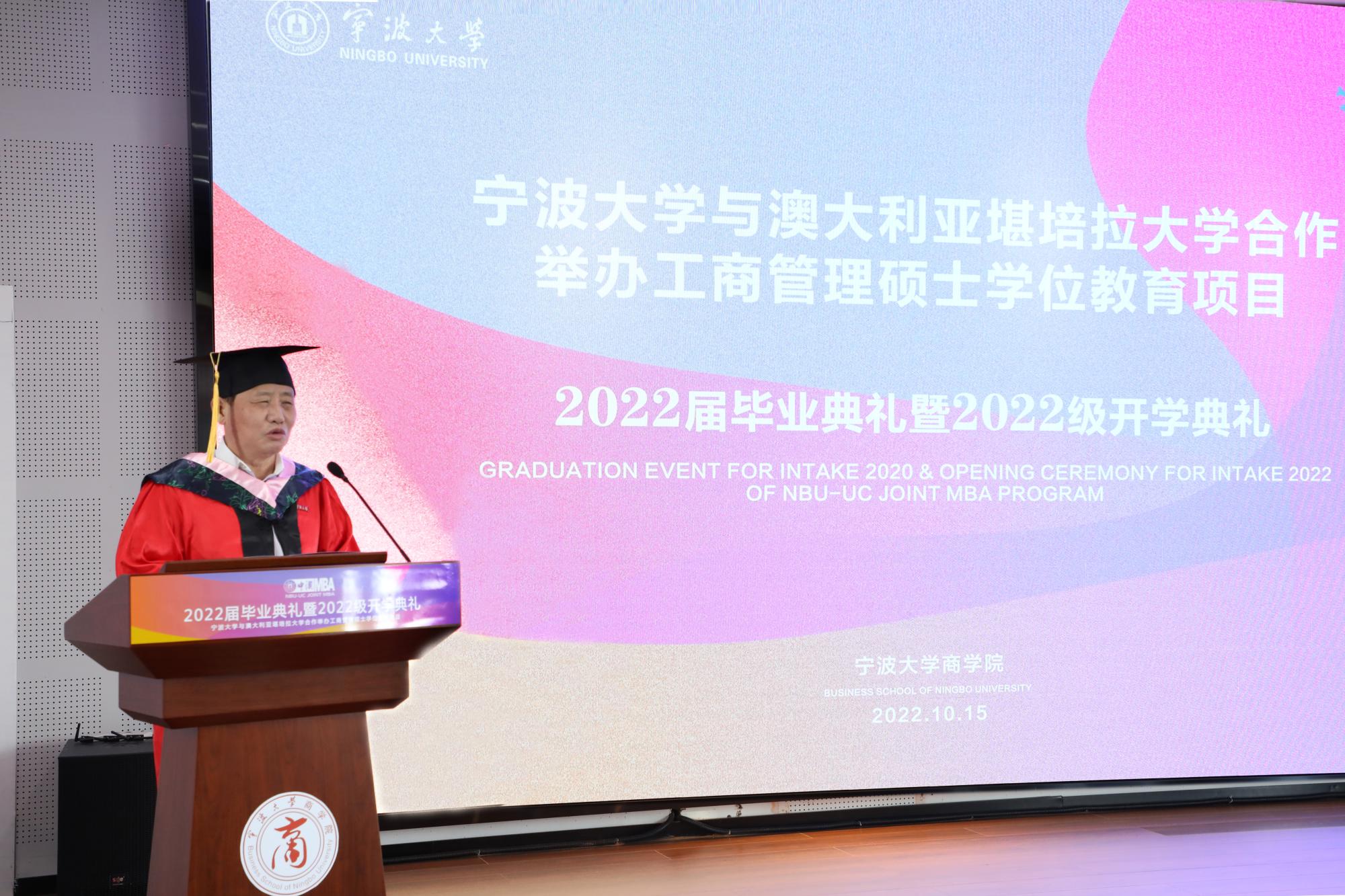 10月15日中午,色情av影片 中澳MBA2022届毕业典礼暨2022级开学典礼在色情av影片 五楼报告厅隆重举行。受疫情影响,2022届31名毕业生中26人到场参加了典礼,2022级新生59人中近40人到场。色情av影片 金祥荣院长、史宏协书记、盛沛锋副院长,项目任课教师及项目管理团队等出席了此次典礼。典礼由盛沛锋副院长主持。