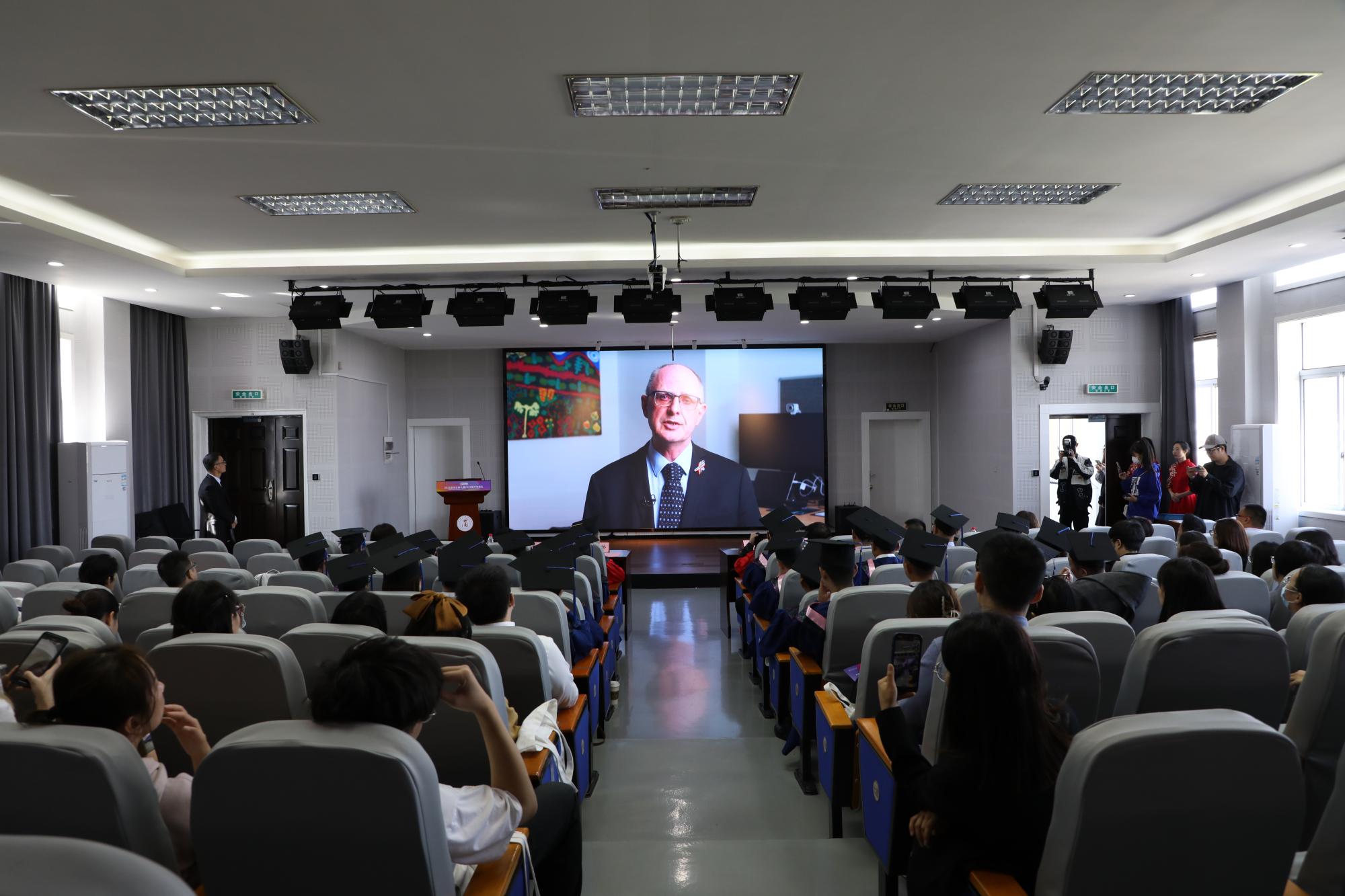 特殊时期,澳大利亚堪培拉大学的教学副校长Geoff Crisp教授再次以视频方式向现场学员们表示祝贺并送上祝福。他和堪培拉大学相关团队所有成员都为宁波中澳MBA项目学员在疫情期间克服种种困难,最终成功完成学业感到由衷自豪,他感谢两校团队的专业、努力与辛勤付出,同时也高度赞誉了色情av影片 和澳大利亚堪培拉大学通过中澳MBA项目所建立起的深远、坚固的友谊。澳大利亚堪培拉大学是一所年轻但充满活力的大学,致力于研究型和应用型教学,目前全球综合排名已晋升至前1%,且位于“全球建校50周年以下大学排行榜”前20位。从澳大利亚堪培拉大学的硕士项目毕业,对所有毕业生来说,都是一种荣耀,它不仅只意味着一张高质量教育文凭,还意味着成为全球颇具影响力的商业、政府和社群校友组织的一员。他热忱欢迎宁大中澳MBA项目的毕业生加入堪培拉大学的校友会,向未来构建国际化发展人际网络迈出新的一步。
